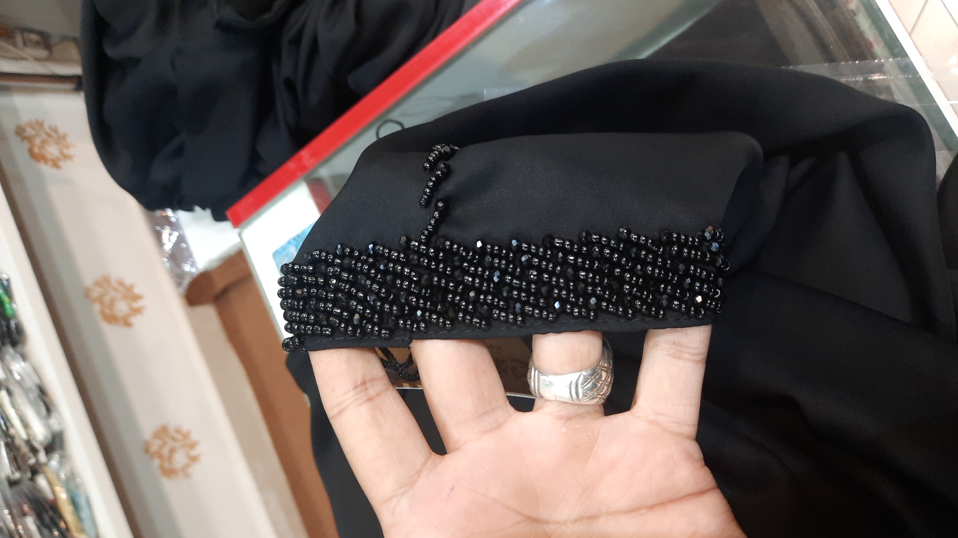 3️⃣جواهر دوزی این مدل از روی مچ چادر شروع شده و تا کنار گوش ادامه داره😊