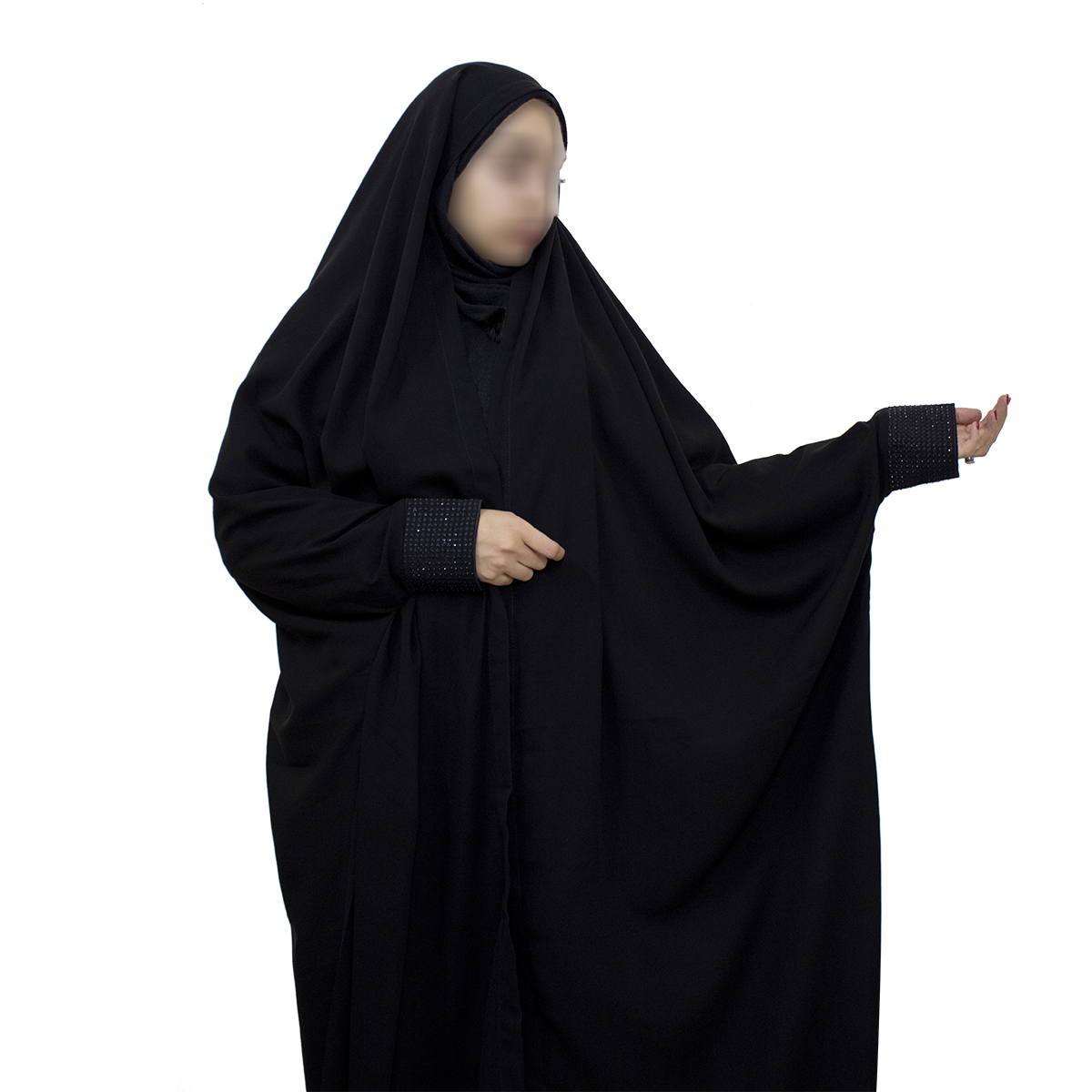 3⃣جلو و پشت این چادر دقیقا شبیه چادر ساده ایرانی هست با این تفاوت که جمع کردن دستکهای چادر بسیار راحتتر است.🙂👌